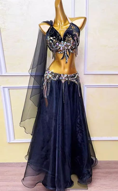 美品一点物 ベリーダンス衣装 蝶々ブラスカート セット L インナー付 plusnao(プラスナオ) ベリーダンス用トップス ブラトップ ダンス衣装